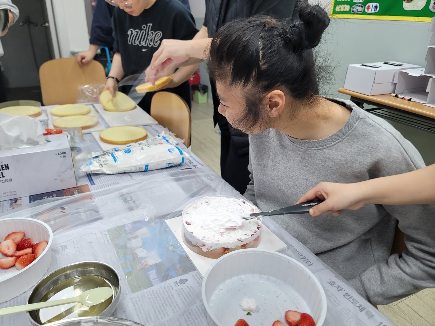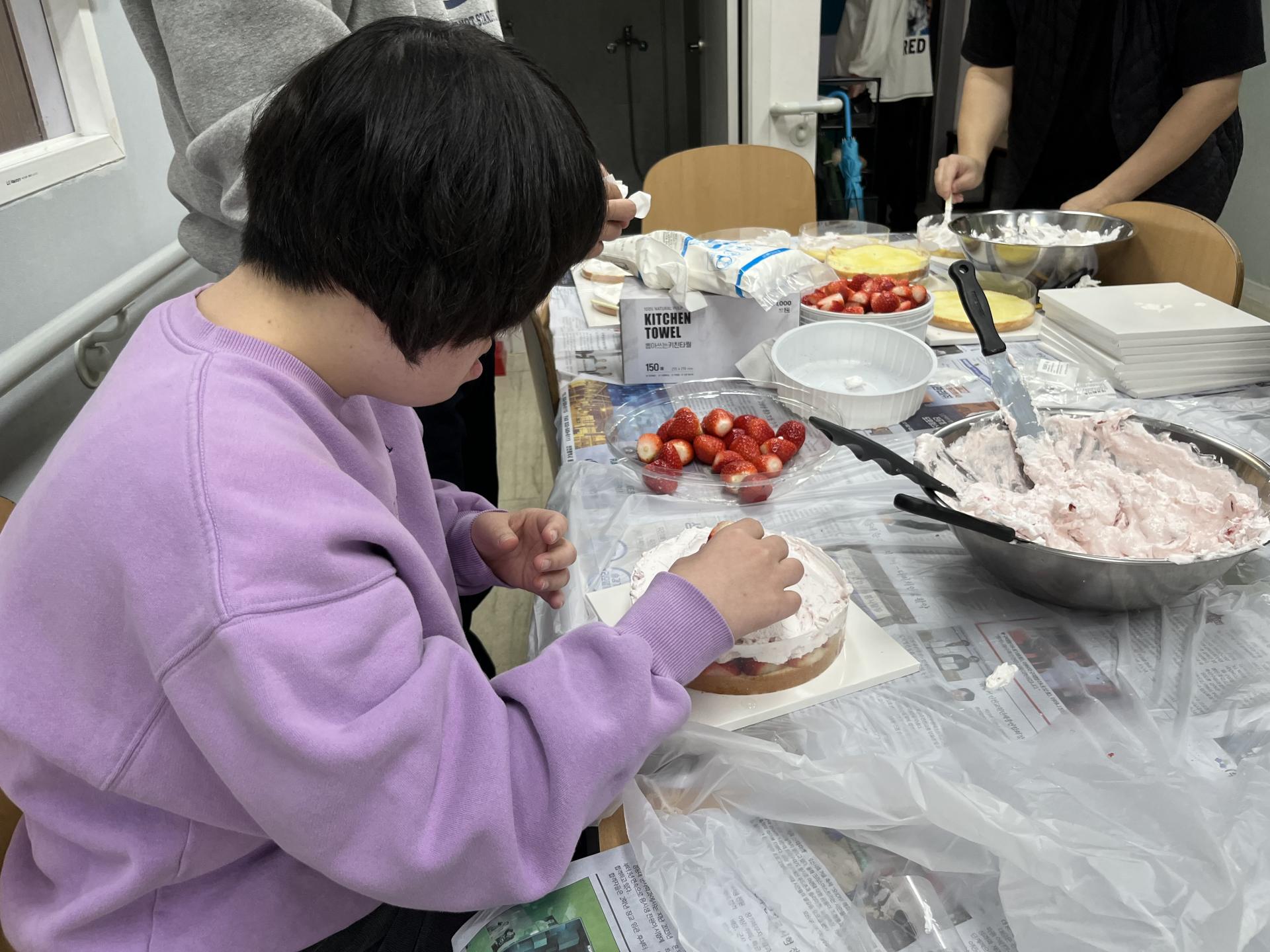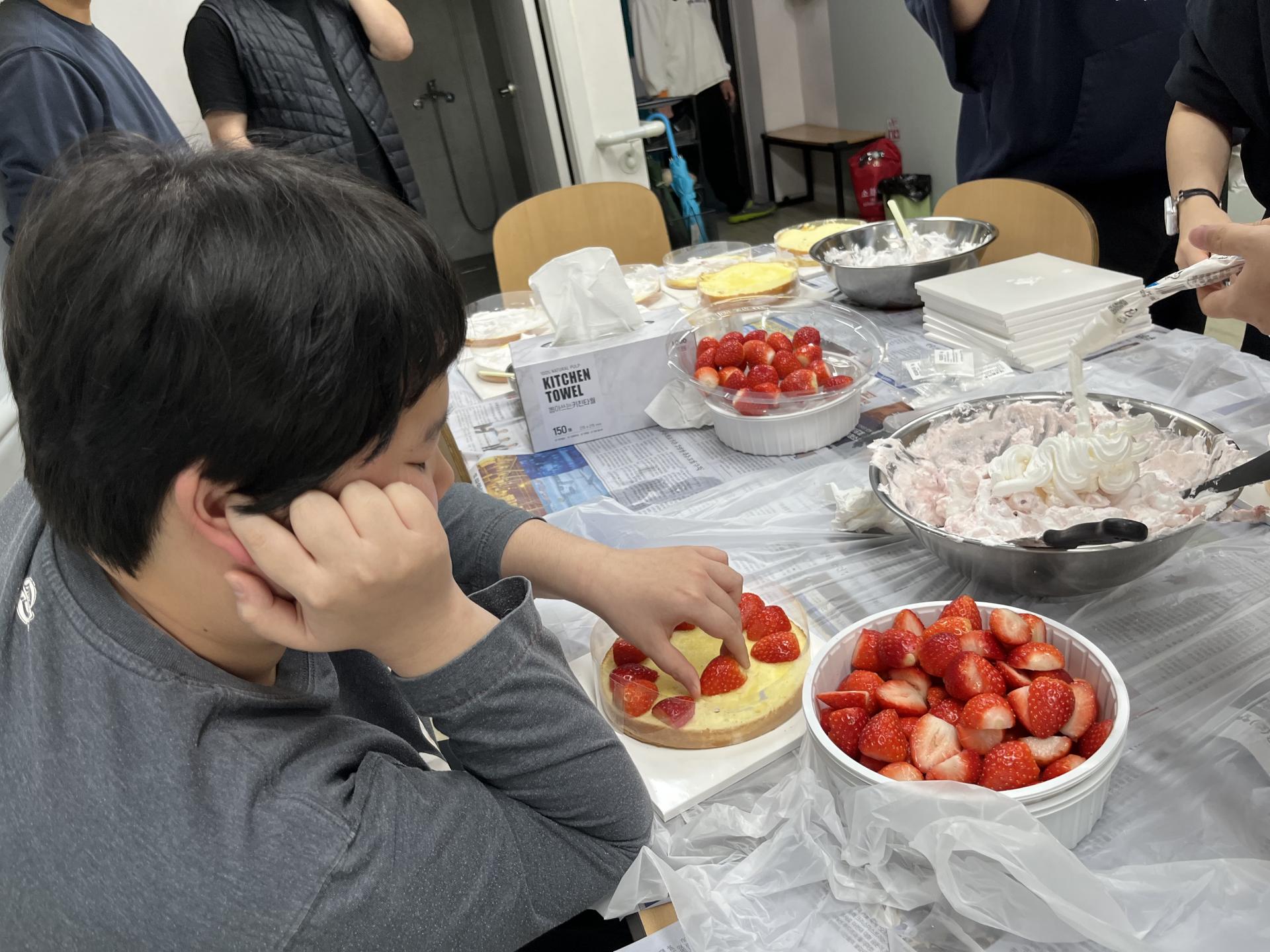 - 딸기 올린 다음 크림 바르기